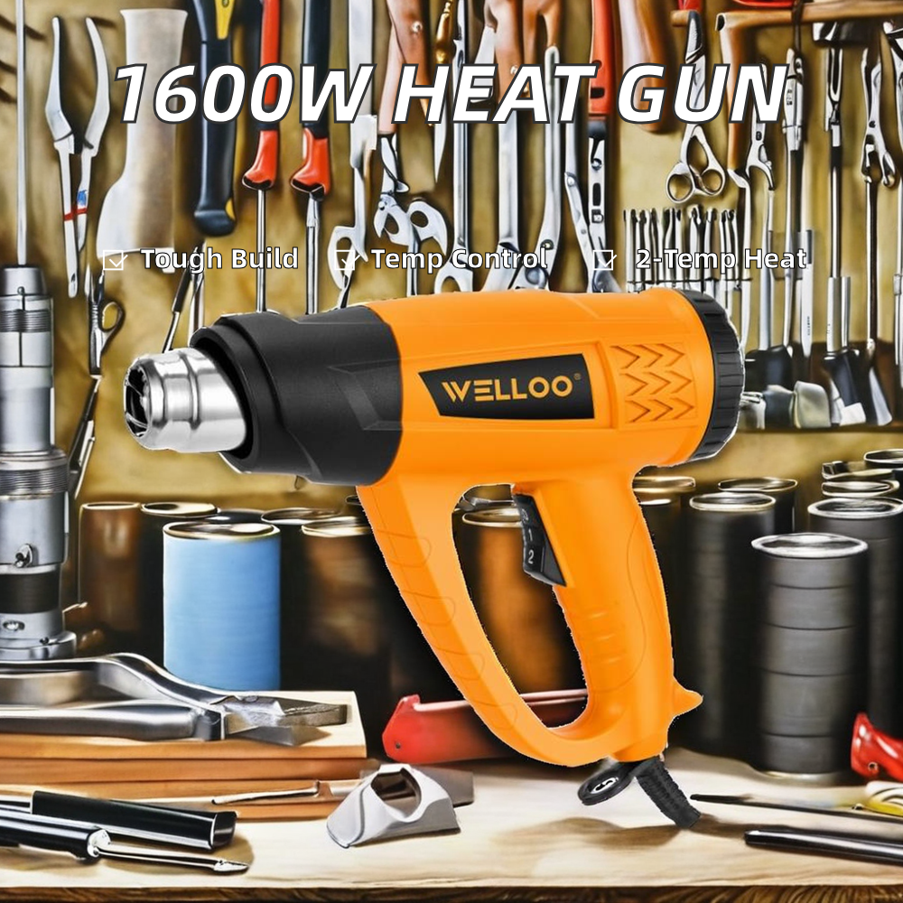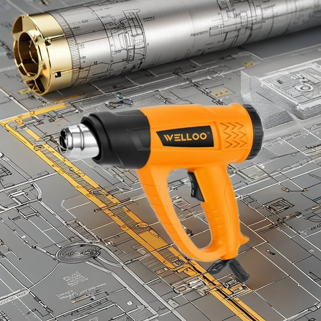 Product Description Specification item value power source Electric feature Adjustable temperature Voltage 220V rated output power 1600w air volume 350-550L/Min weight 1.2kg Switch Type Other air temperature 50-650℃ place of origin China Tool Type Corded Hot Guns grade Industrial warranty 0YEAR customized support OEM brand name WELLOO Material plastic Nozzle Opening 1.5mm