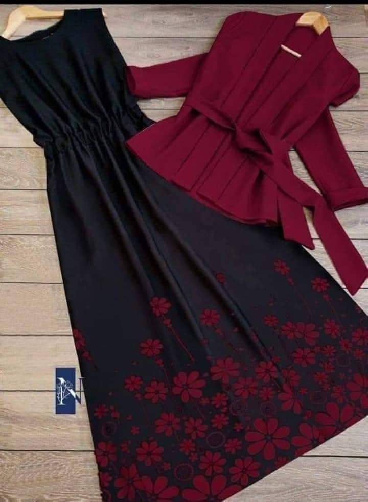 Western Dress summer fashion Floral Gown and Blazer women's summer dress, western style Tops and Gown sense of niche temperament shirt for Girls - Maroon