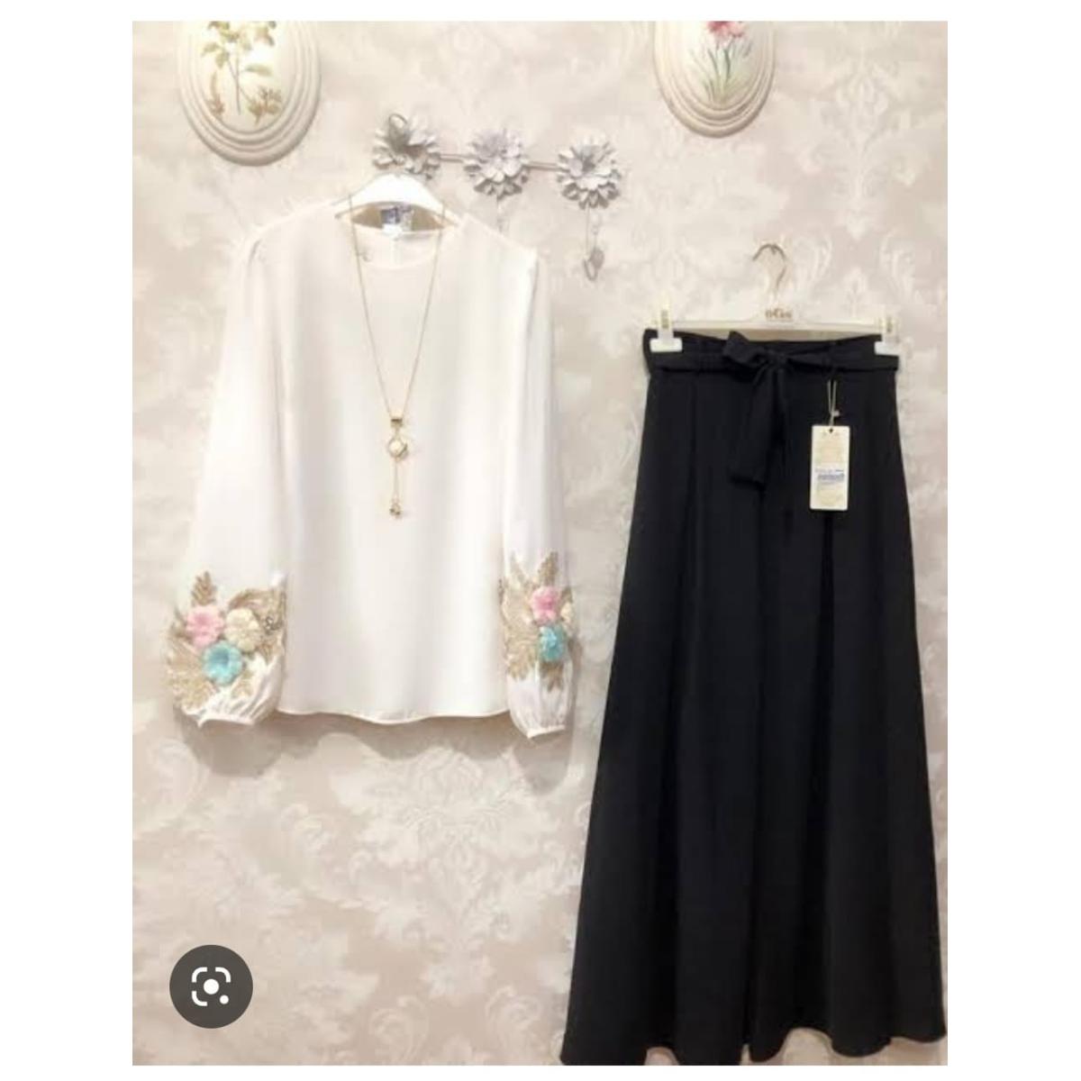Western Dress white Tops and Black Skart Kurti for Women - Black