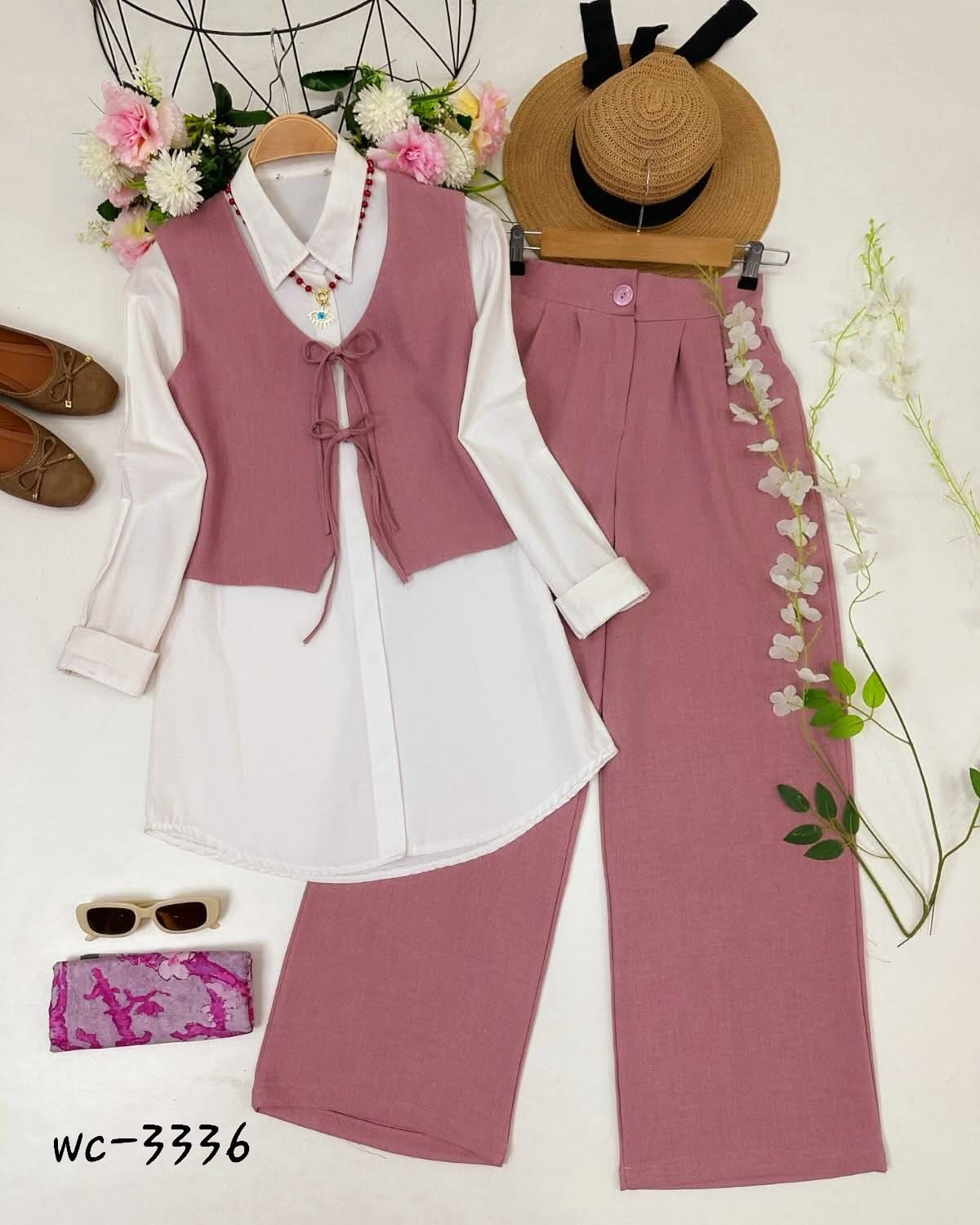 Western Fashion Ladis Stitched Co-ord set Tops and Pant Vangchur Fabric dress for women - Pink