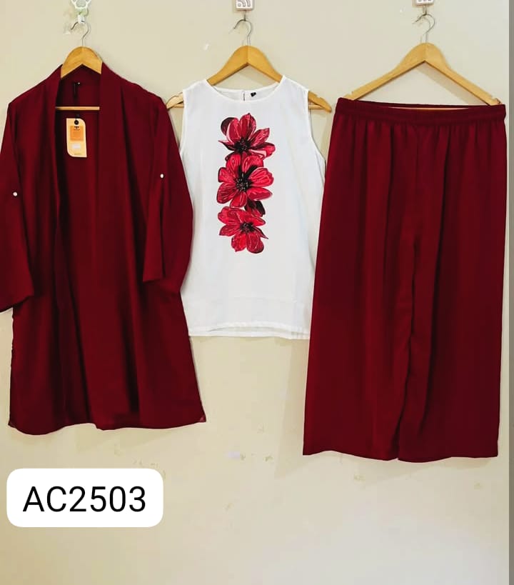 Western Fashion Ladis Stitched Co-ord set Tops Inner and Pant Georgette Fabric dress for women - Maroon