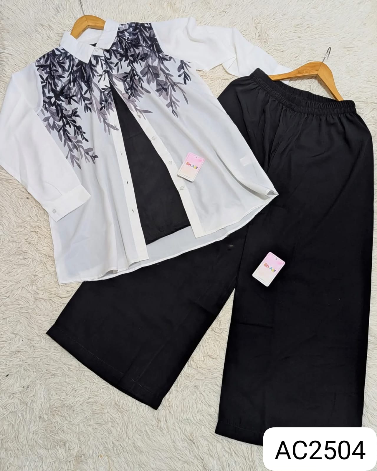Western Fashion Ladis Stitched Fancy 2piece collection set Tops and Pant Fabric Garments Georgette  dress for women - Black