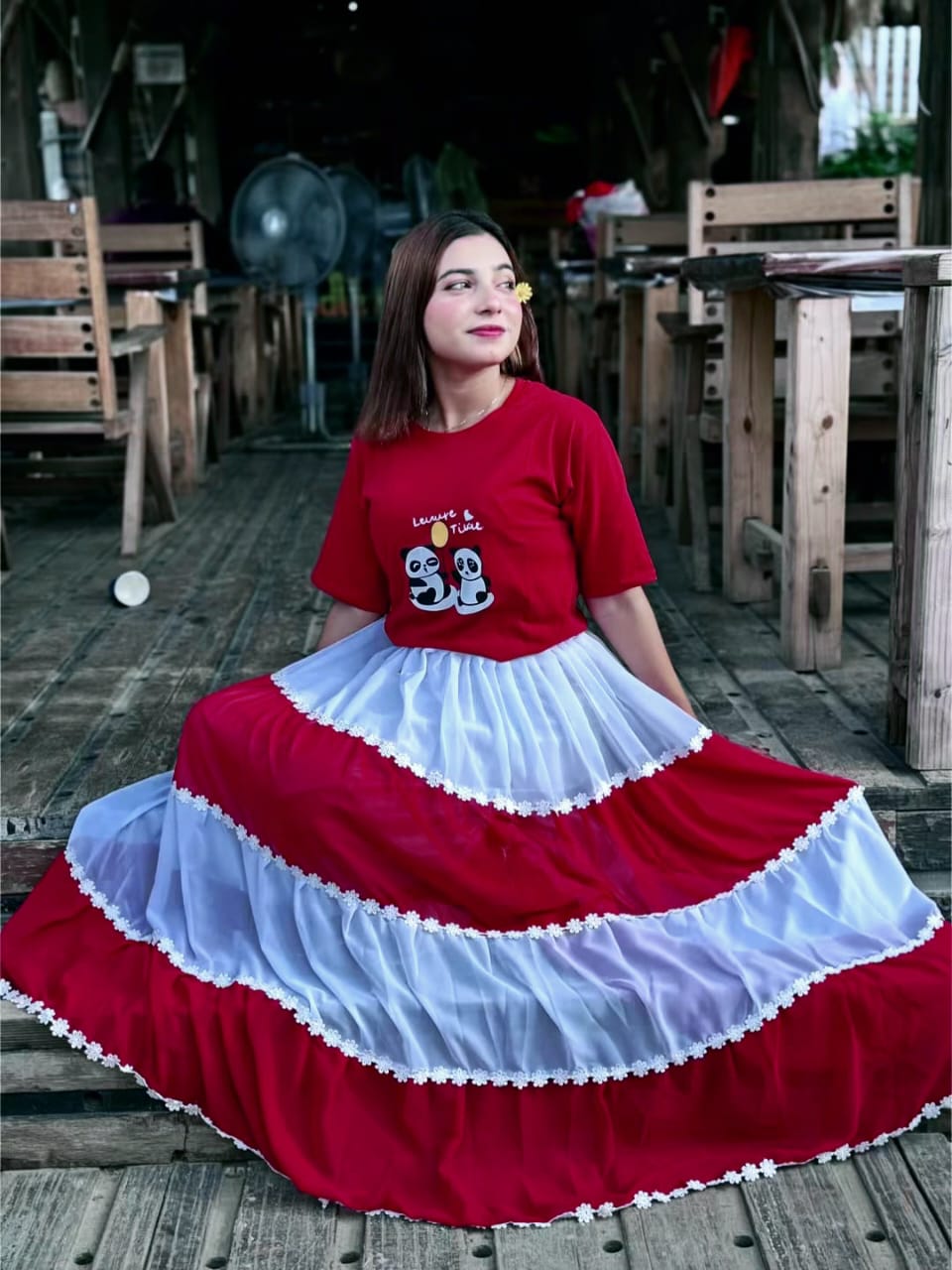 Western Fashion Ladis Stitched Fancy collection Multicolor Tops and Skart Set Fabric Chinigura Georgette for women - Maroon