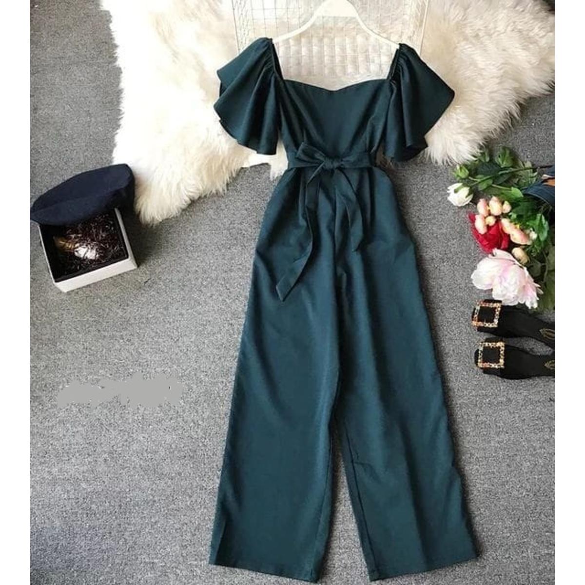 Western Fashion Ladis Stitched Jumpsuit Charry Georgette style Kurti dress for women - Green