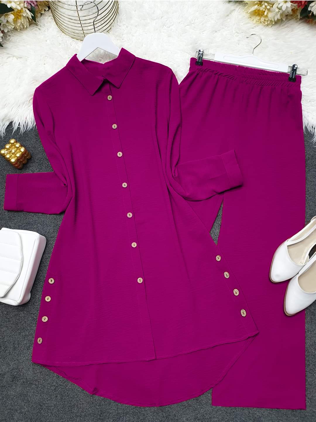 Western Fashion Ladis Stitched Magenta Color Freal Tops and Pant Double Georgette style Kurti dress for wome - Magenta