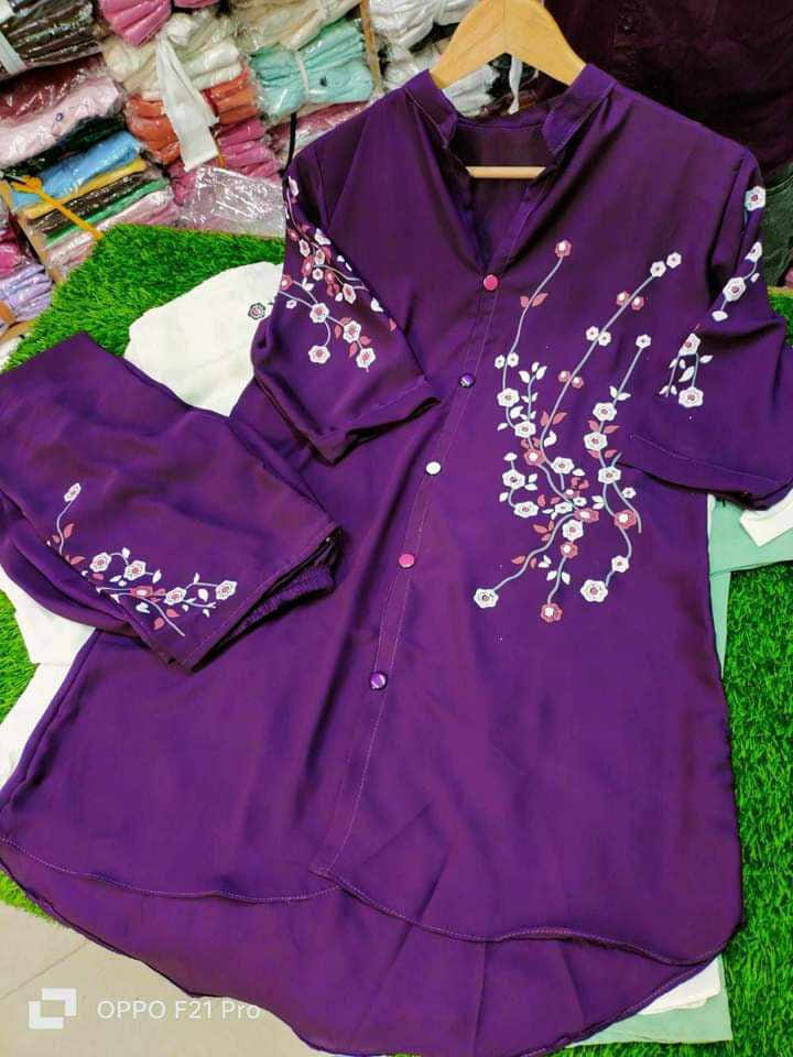 Western Fashion Ladis Stitched Purple Color Tops and Pant Double Georgette style Kurti dress for wome - Purple