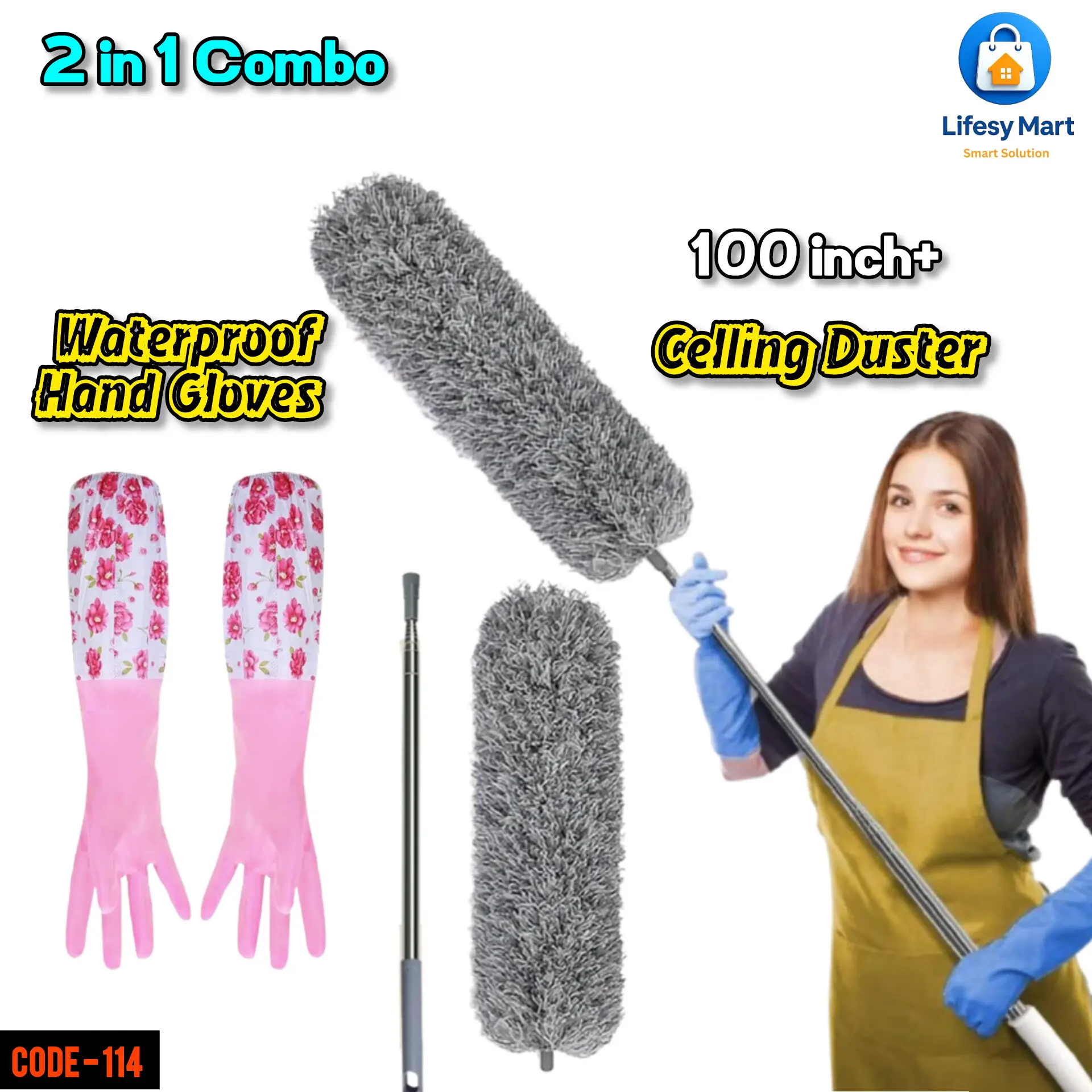- 🎯 অ্যাডজাস্টেবল ও আরামদায়ক – গ্লাভস হাতে ফিট করে; ডাস্টারের রড ১০০ ইঞ্চি পর্যন্ত প্রসারিত