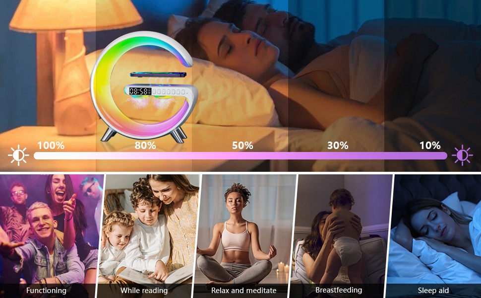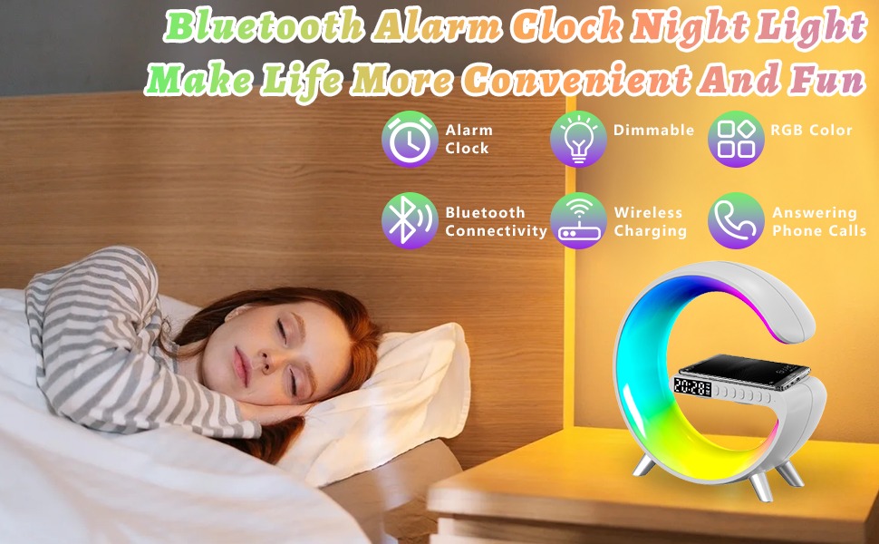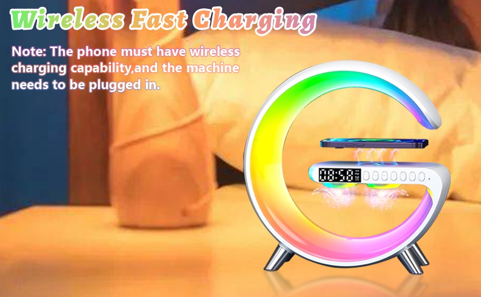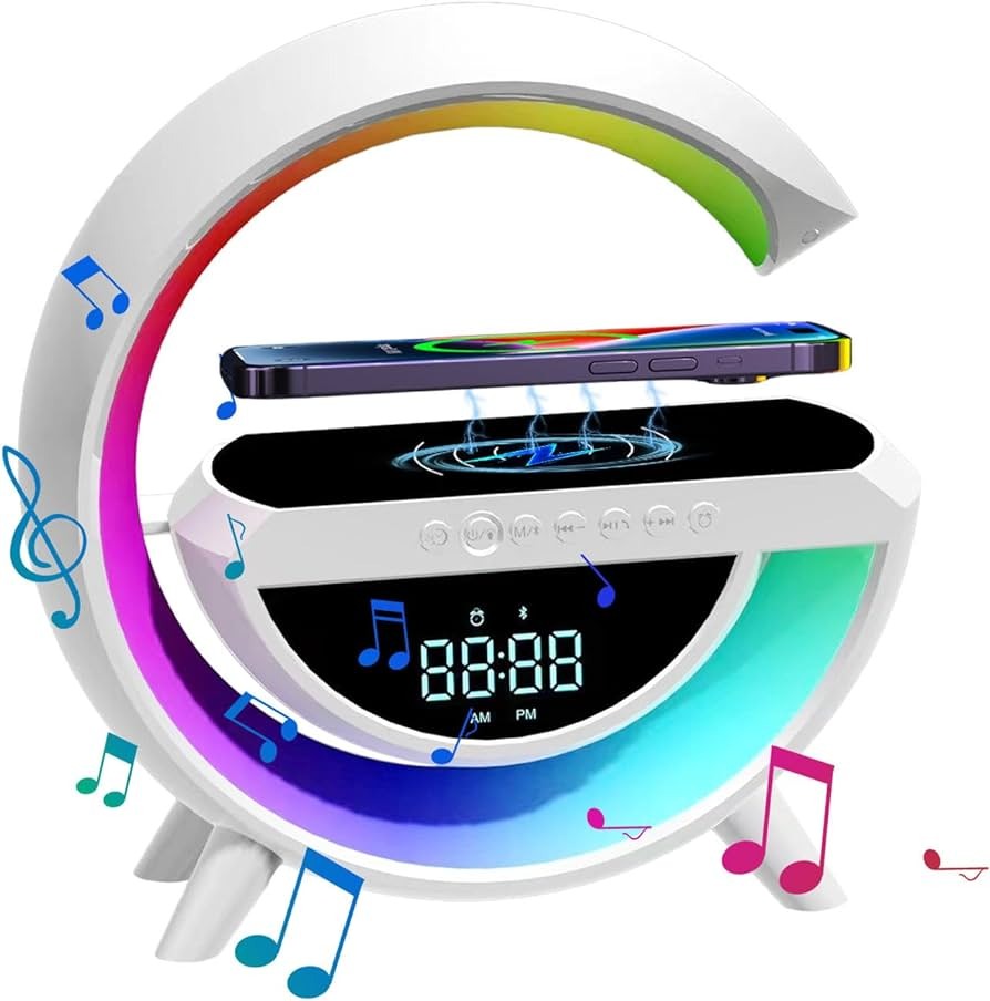 বেডরুম, অফিস বা টেবিলের জন্য এটি একটি স্টাইলিশ ও মাল্টিফাংশনাল গ্যাজেট। ওয়্যারলেস স্পিকার, রঙ পরিবর্তনযোগ্য লাইট, অ্যালার্ম ক্লক এবং iPhone চার্জিং সুবিধা একসাথে পাওয়ার সুবিধা – এটি আপনার দৈনন্দিন জীবনকে আরও আরামদায়ক করে।