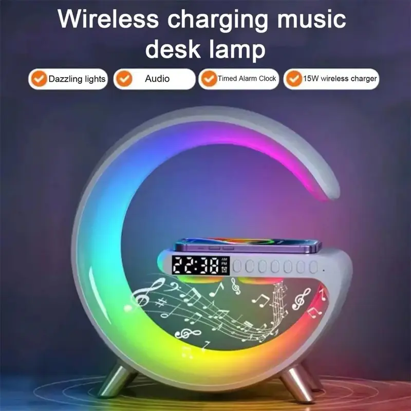 বেডরুম, অফিস বা টেবিলের জন্য এটি একটি স্টাইলিশ ও মাল্টিফাংশনাল গ্যাজেট। ওয়্যারলেস স্পিকার, রঙ পরিবর্তনযোগ্য লাইট, অ্যালার্ম ক্লক এবং iPhone চার্জিং সুবিধা একসাথে পাওয়ার সুবিধা – এটি আপনার দৈনন্দিন জীবনকে আরও আরামদায়ক করে।