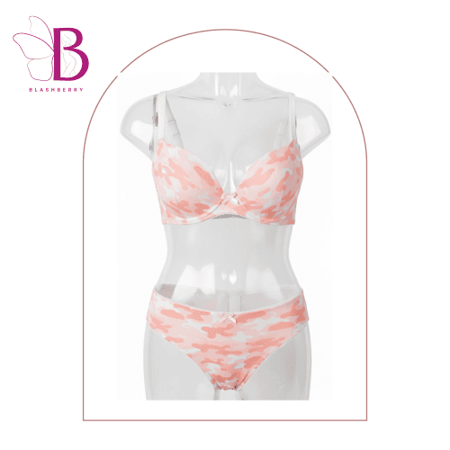 Specifications Pattern: Pink/White Camouflage Bra Style: Push-up / Padded / Underwire Panty Style: Bikini / Cheeky cut Material: Nylon/Spandex Blend (Suggested) Care Instructions: Hand wash cold, line dry recommended to preserve shape and elasticity Key Features Playful Design: Features a unique pink and white camouflage pattern that puts a sweet twist on a classic print. Flattering Support: The bra is designed with padded, push-up cups to enhance your natural shape and provide excellent support. Charming Details: Accented with delicate satin bows at the center of the bra and waistband of the panty for a feminine finish. Adjustable Fit: Equipped with adjustable white shoulder straps and a hook-and-eye back closure to ensure the perfect fit. Soft & Comfortable: Made from a smooth, skin-friendly fabric blend that feels gentle against the skin for all-day wear.