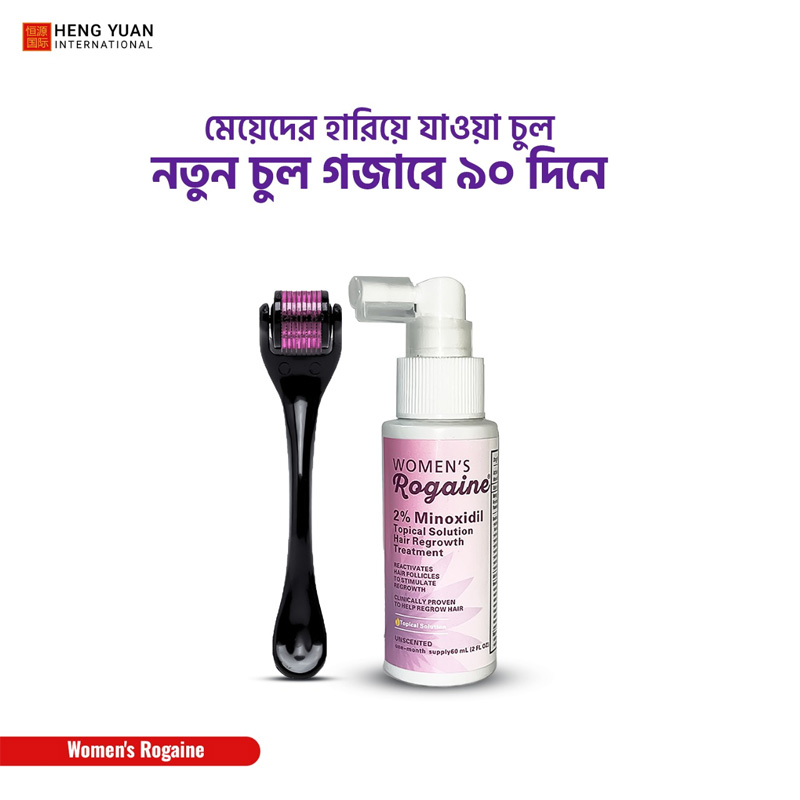 Women's Rogaine Topical Solution Hair Regrowth Treatment 2% Minoxidil for Women Get Derma Roller Free - 60 ml 30 Days Supply - Combo Female Minoxidil - MNXWC
