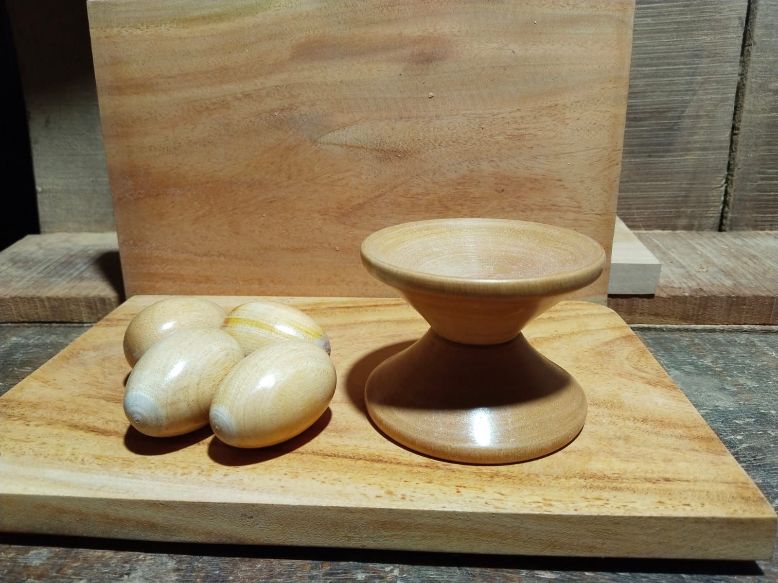 Wooden baby toys set , wooden small egg set - Showpiece ( 4 pieces egg with stand )