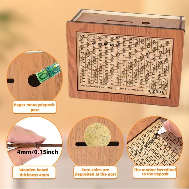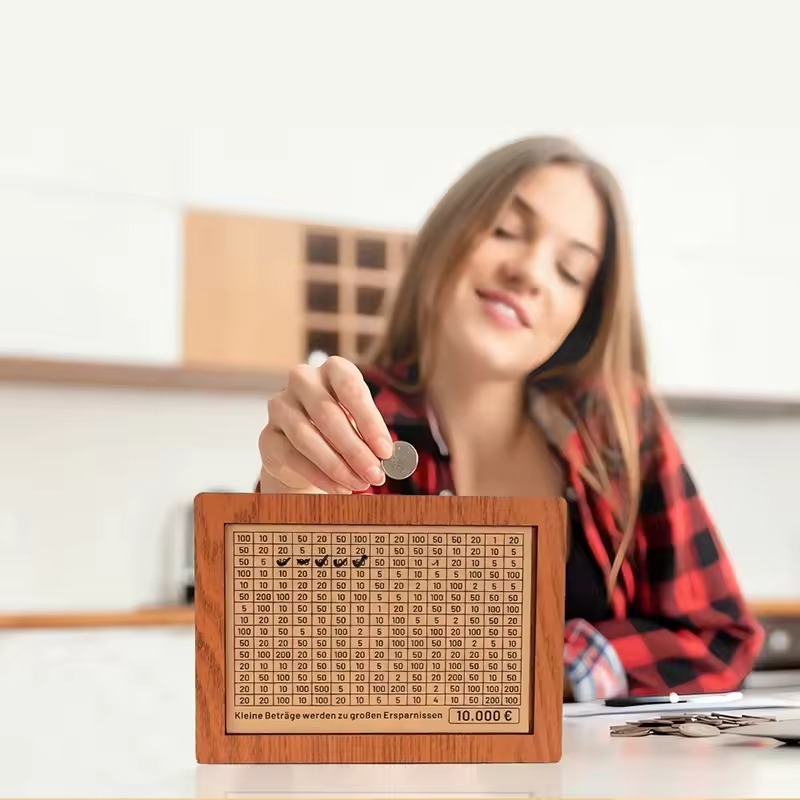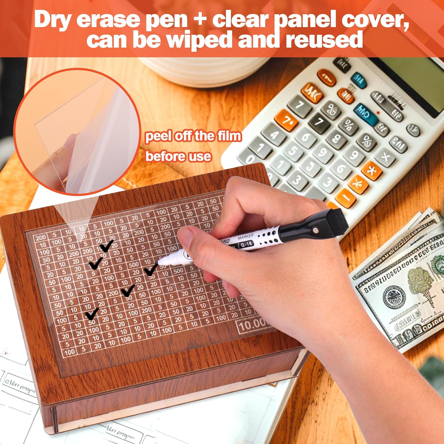 - VISUAL TRACKING: Premium wooden savings tracker board with pre-marked denominations from 100 to 500, helping you track progress towards your 120,000 goal