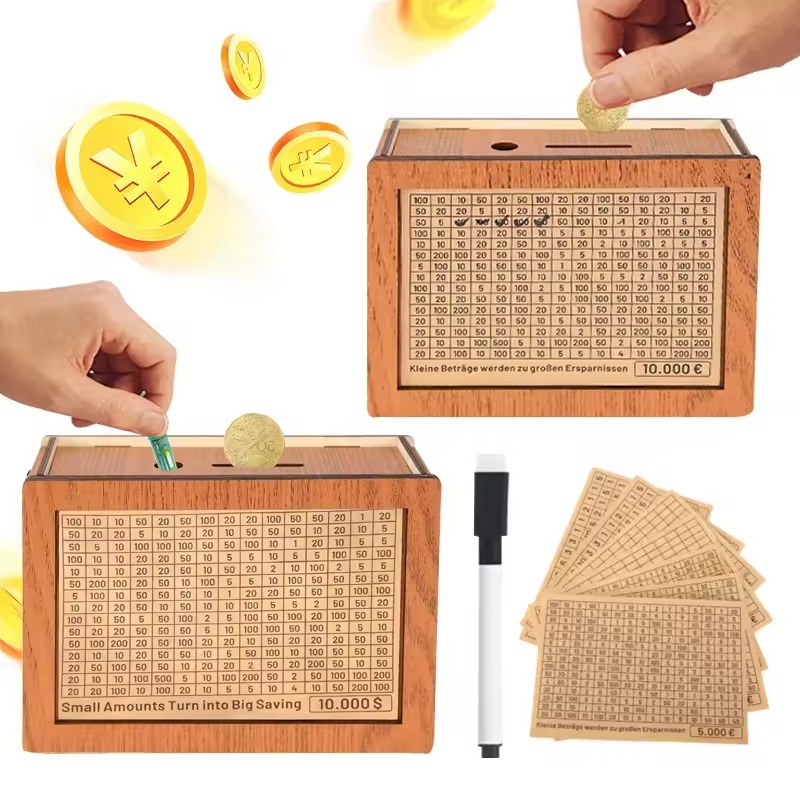 - SMART SAVINGS TRACKER – This unique piggy bank comes with a target tracking system, helping you save systematically and reach your financial goals efficiently.