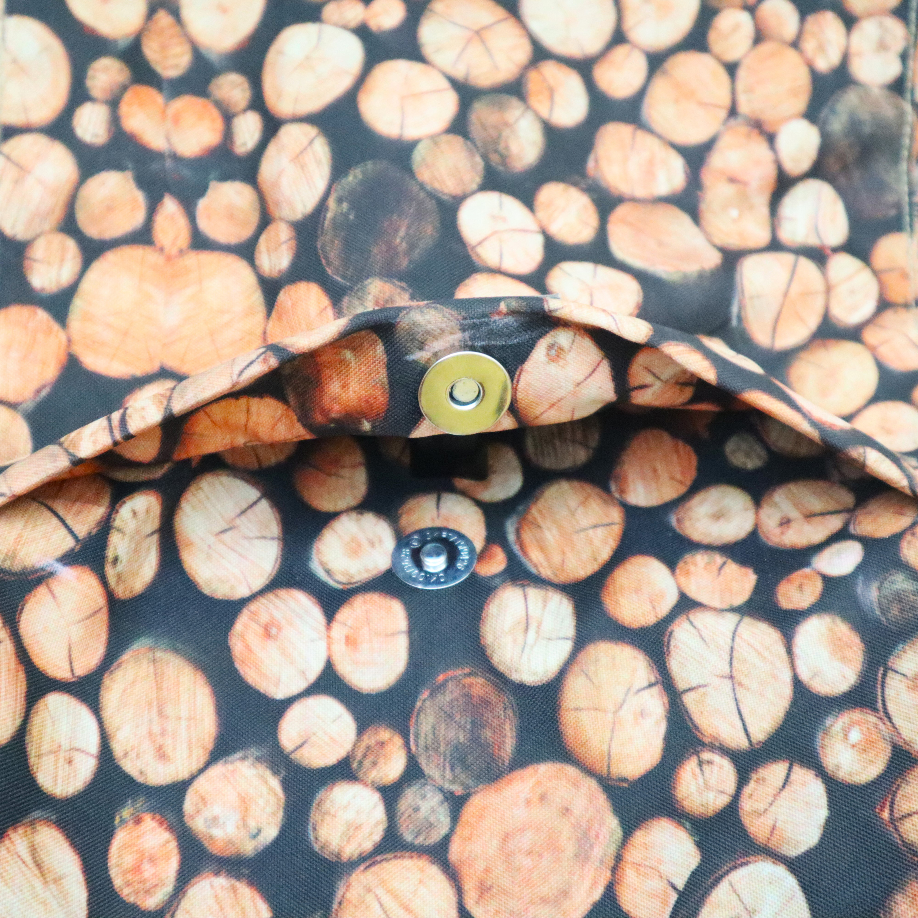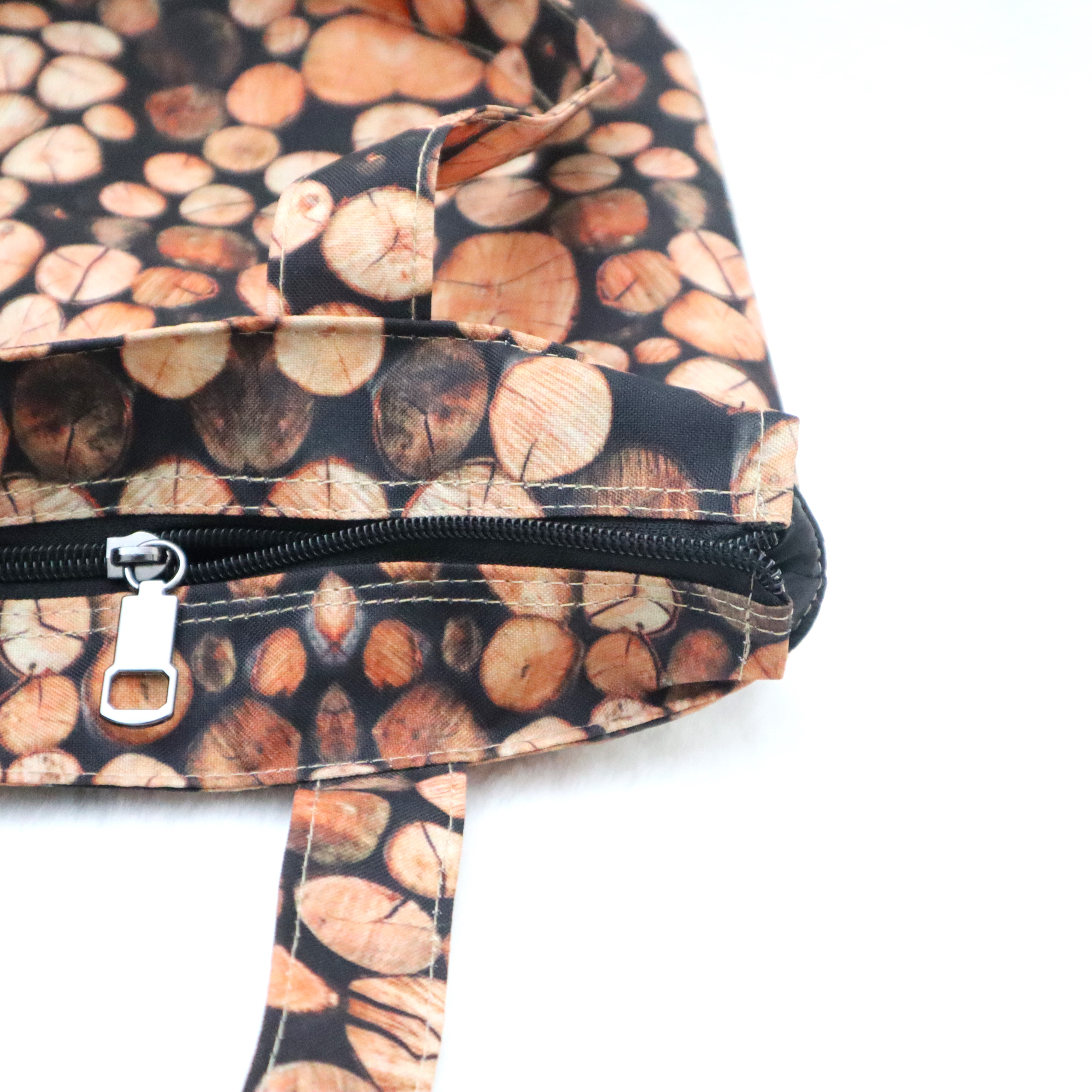 Eco-Friendly Design: Crafted from thick Concord fabric with an all-over Woodpile print, these bags are a testament to fashion with a conscience. They are the ideal choice for those who prioritize sustainable materials.