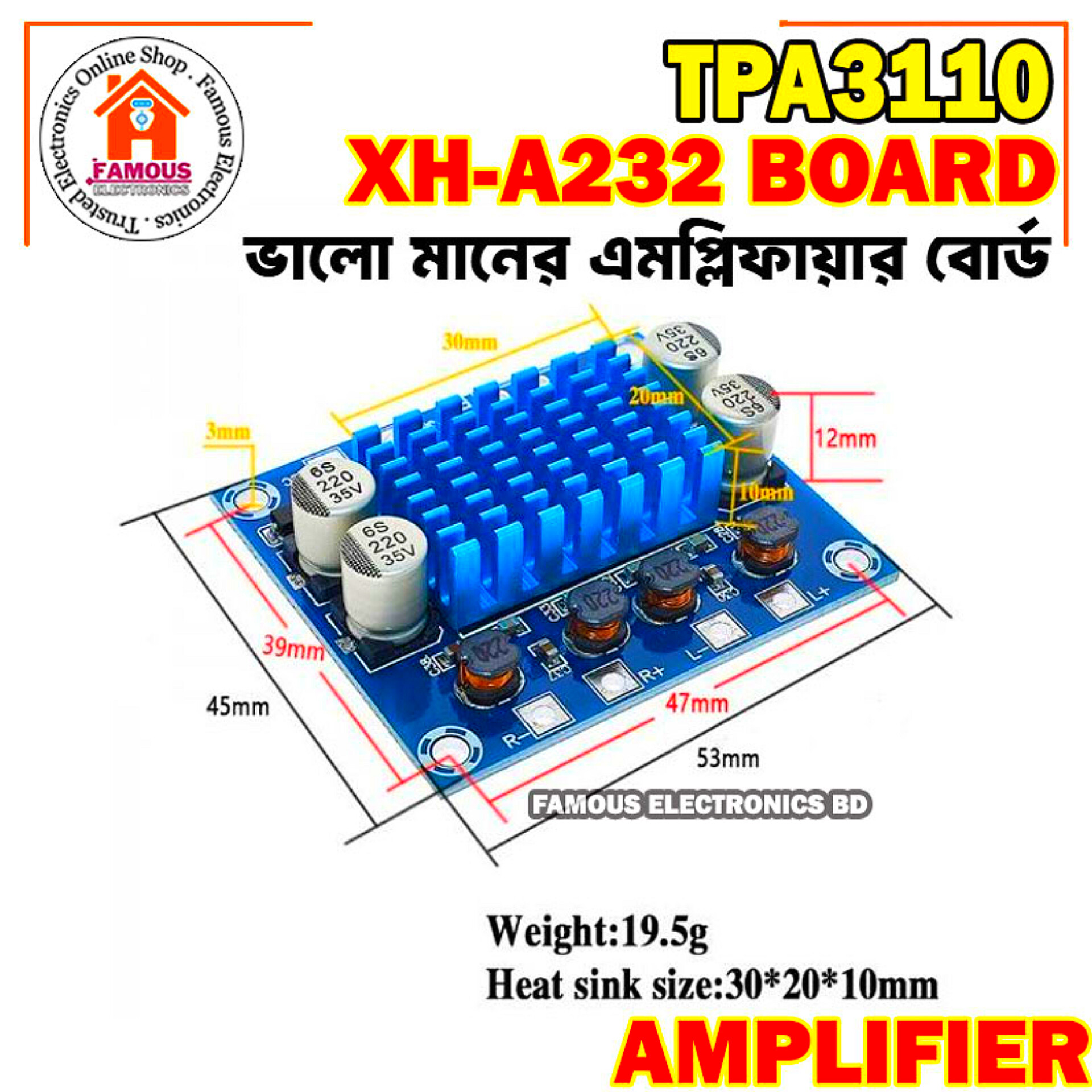 - Included: 1PCI TPA3110 Digital Power Audio Amplifier