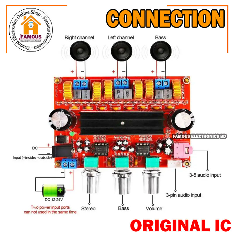 Supply Voltage: DC 12-24V- Chip: TPA3116*2 (Original IC)