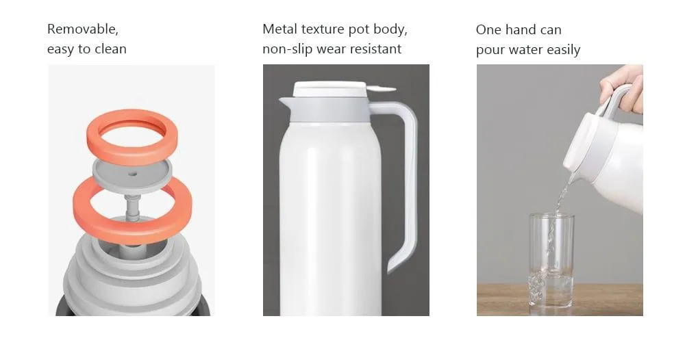 Large capacity vacuum flask portable kettle is made of stainless steel tank and food grade silicone stopper, safe materials guarantee your health. Super insulation makes it suitable for all seasons, thermal insulation for winter, cold insulation for summer. A good travel mug and gift for people of all ages.