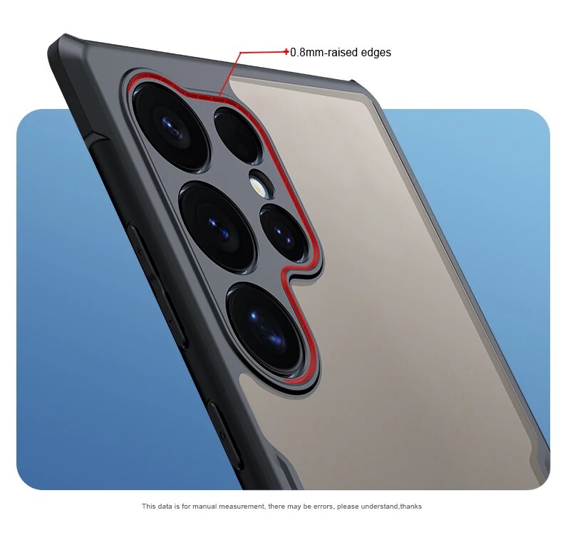 0.8mm-raised edges to avoid phone's precious camera's lens, and the screen, from getting easily scratched