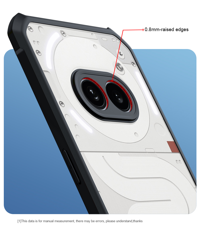 0.8mm-raised edges to avoid phone's precious camera's lens, and the screen, from getting easily scratched.