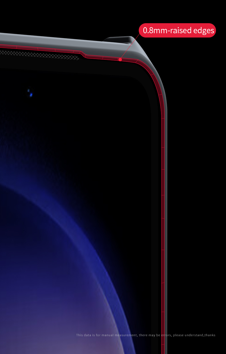 0.8mm-raised edges to avoid phone's precious camera's lens, and the screen, from getting easily scratched