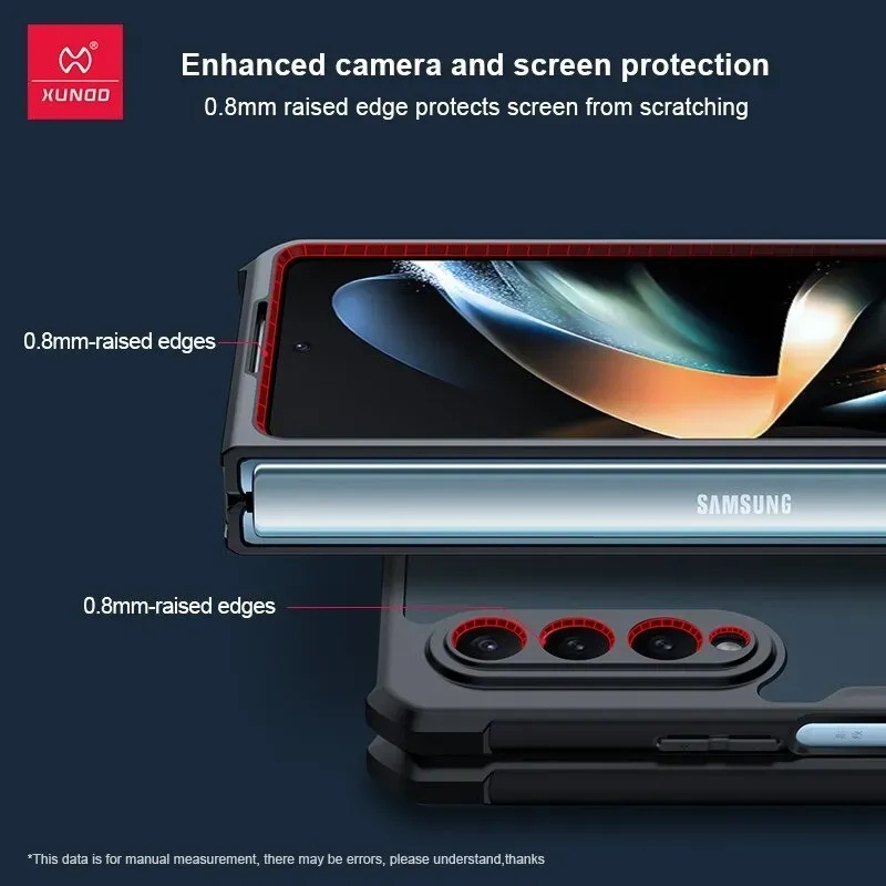 Xundd ( Galaxy Z Fold4 ) Airbags Folding Cover Case for Samsung Galaxy Z Fold4 Shockproof Black and Transparent Case