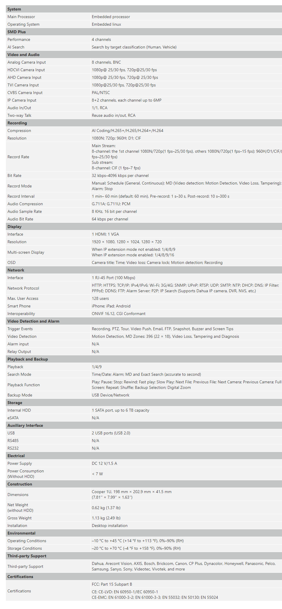 - Supports HDCVI/AHD/TVI/CVBS/IP video inputs