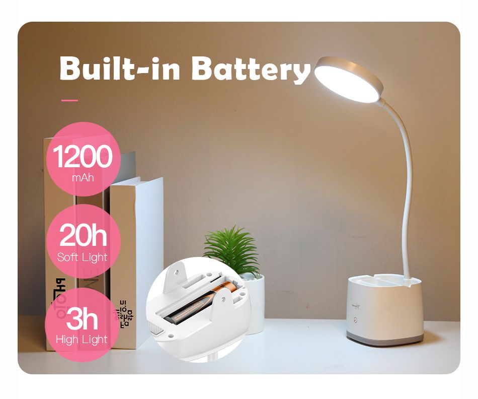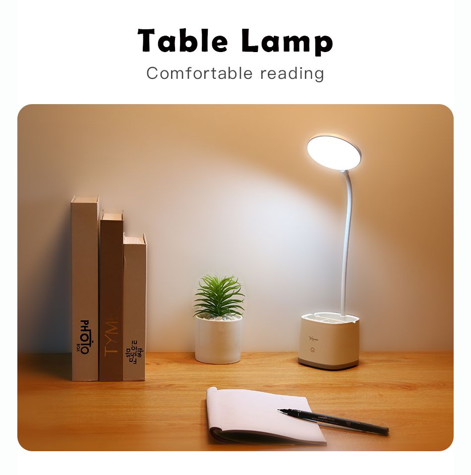 2-in-1 Design – Combines a bright LED table lamp with a built-in pen holder for space-saving convenience.