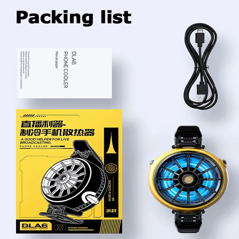\nReach the peak with the DLA6 Phone Cooler, the savior of mobile gaming, content creation, and tech geeks. Utilizing the advanced Mute Cooling Technology, DLA6 is ready to help you to keep the device from burning up during the heavy-duty work—whether you're playing long games, making live broadcasts, or having long video calls. Alongside its powerful cooling facility and carrying benefits, this tech gadget is a powerful combination of the useful and the stylish. \n \n