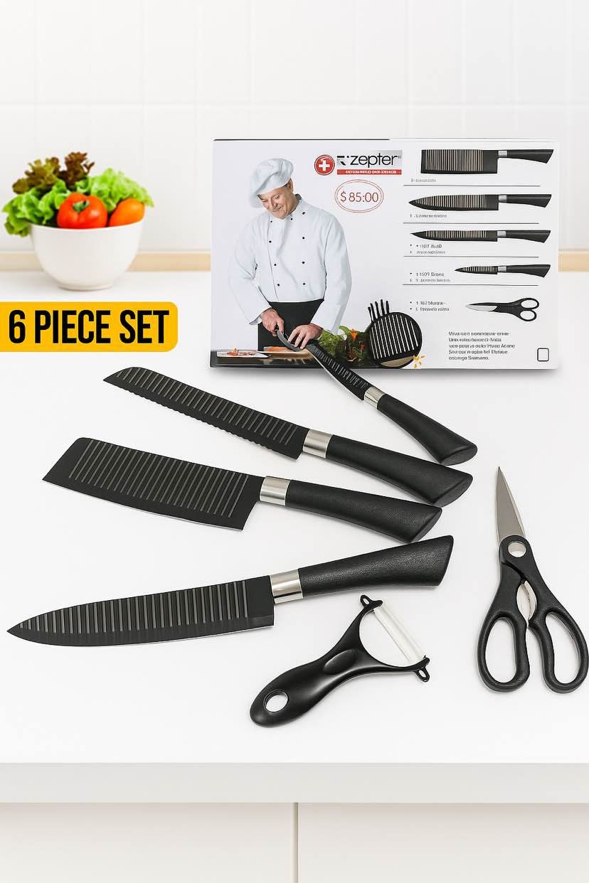 6pcs High Carbon Kitchen Luxury Knifes Set Stainless Kitchen Knives Sets Black Knife Set