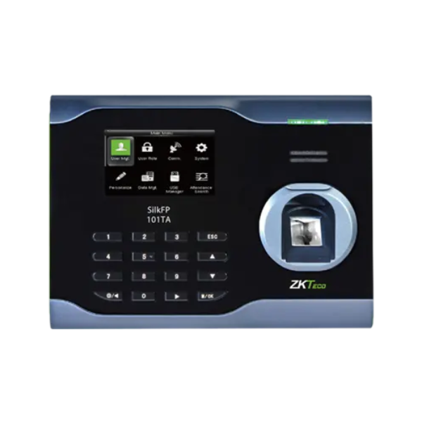 - ZKTeco SILKFP-101TA Fingerprint Time Attendance Terminal with Adapter is a biometric device that accurately tracks employee attendance via fingerprints and ID cards with robust storage and connectivity features.