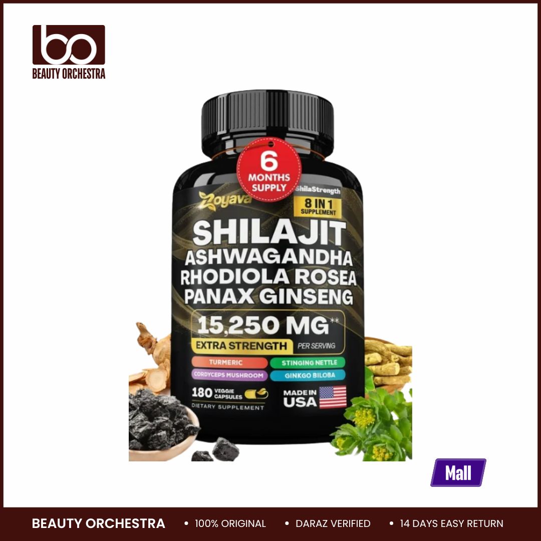 Zoyava Shilajit Panax Ginseng Ashwagandha (15,250 MG - 180 Capsules) Powerful Natural Energy & Vitality Support